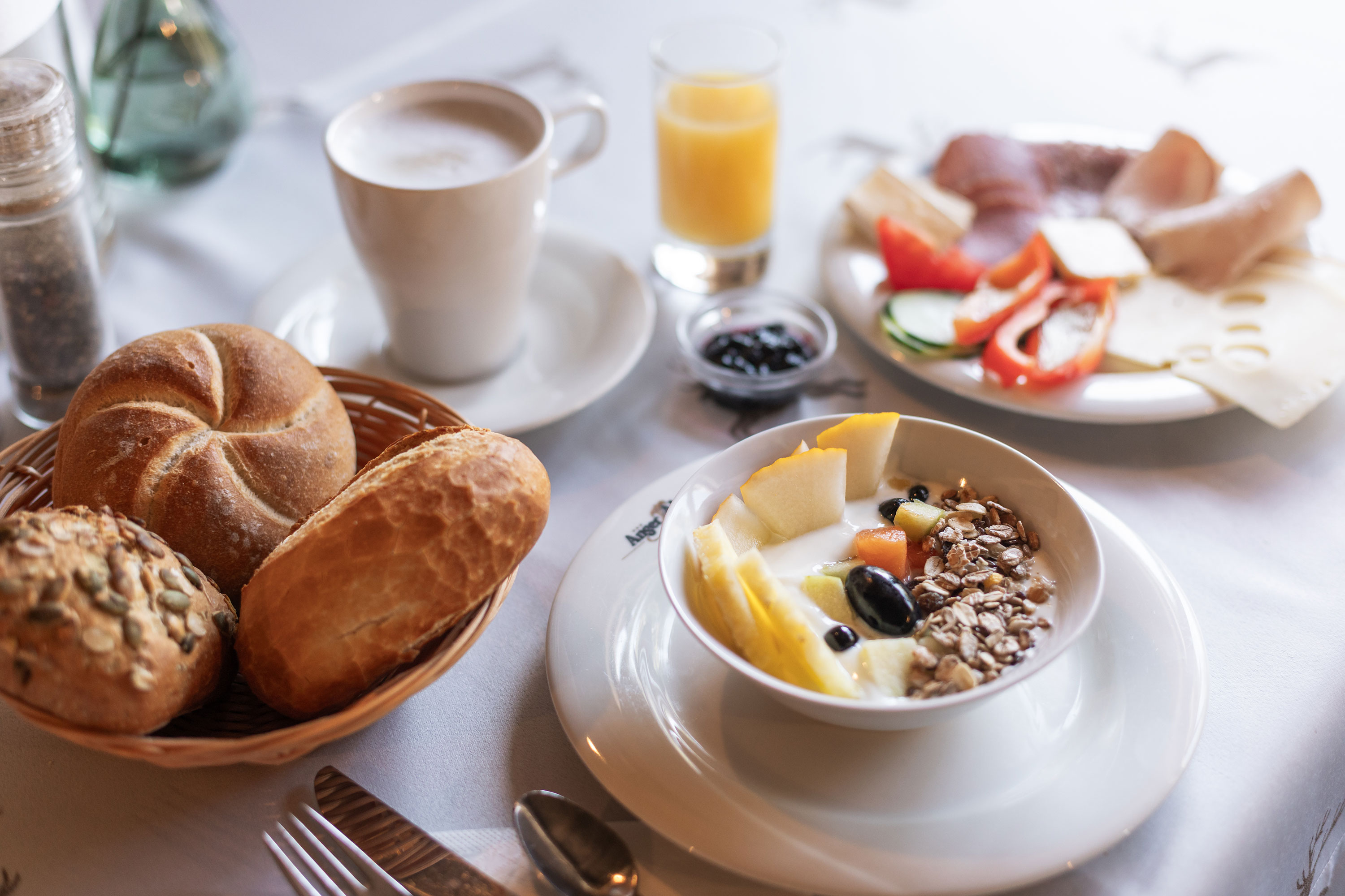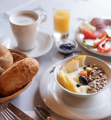 vielseitiges und reichhaltiges Frühstücksbuffet mit vielen Naturprodukten aus der Region und selbstgemachten Köstlichkeiten. Inkl. Entsafter und Getreidemühle bzw. Getreideflocker - für den richtigen Start in den Tag